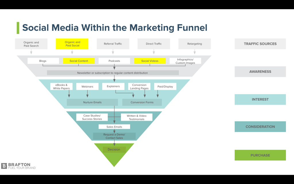 So, what’s the connection between social media and the buyer’s journey? Social media marketing allows brands to reach consumers at all 3 stages of their journey.