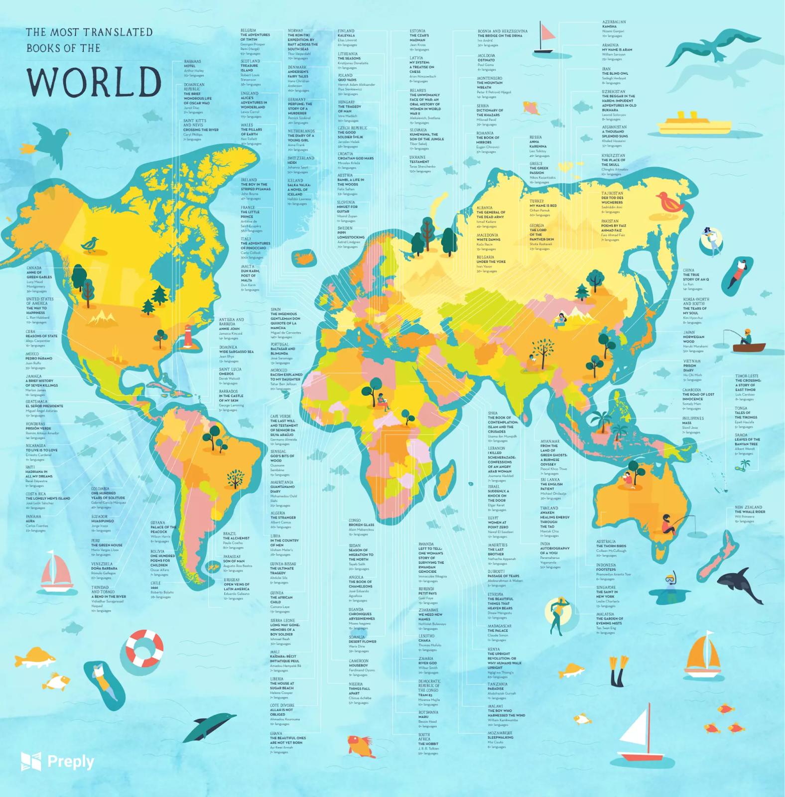 - Fitting the name of the country, the name of the book, the author and the number of times it was translated on this map for nearly 150 countries.
