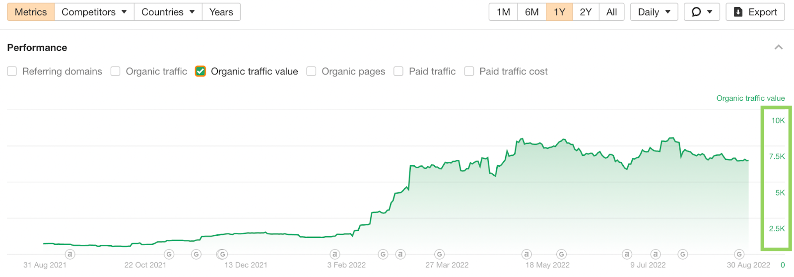 That’s in the ballpark of $30,000+ in traffic value over the last 6 months. Meaning, you’d have to pay more than $30,000 if you were buying this traffic through ads.